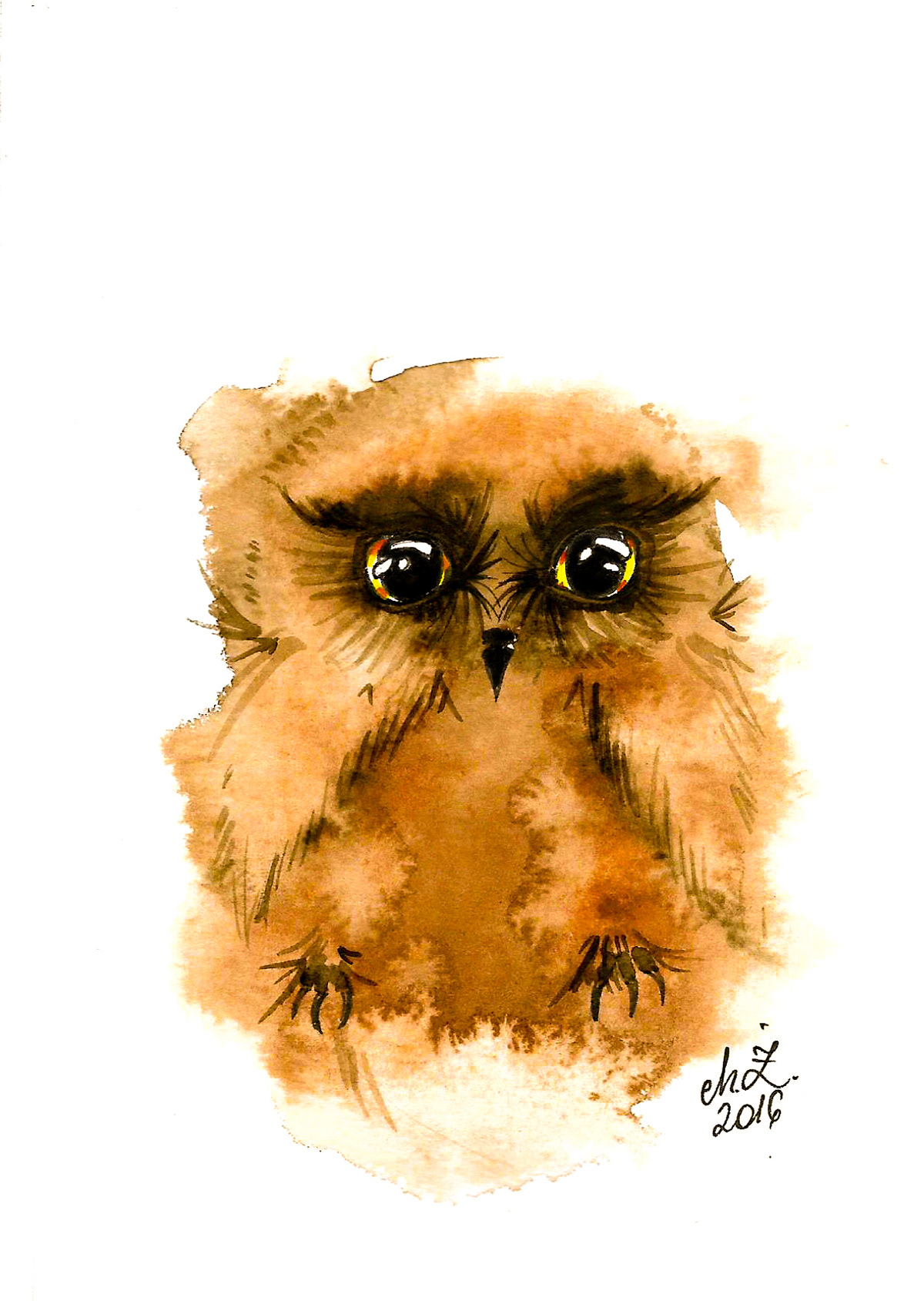 A watercolor owl that started from a stain, then I added details, and that's how she was born!